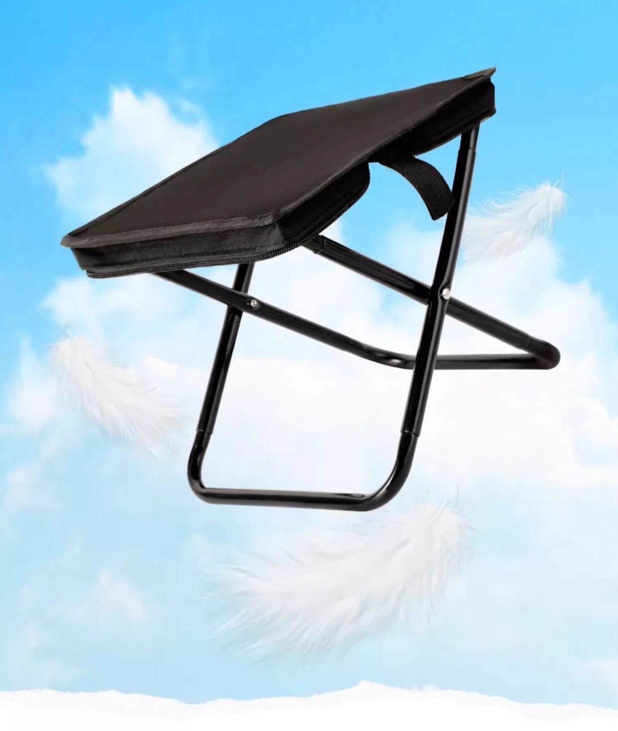 Scaun Pliabil, Flippy, pentru Adulti, Portabil, pentru Camping, Pescuit, din Panza Oxford si Cadru Metalic, 24 x 24 x 28 cm, Negru