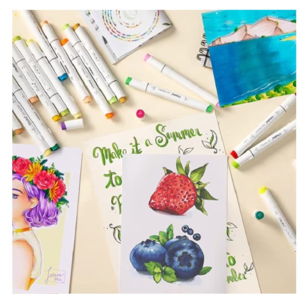 Set 262 Markere, Flippy, Dublu Capat, Subtire 1mm si Gros 6 mm, Geanta Depozitare, Corp Alb, Multicolor