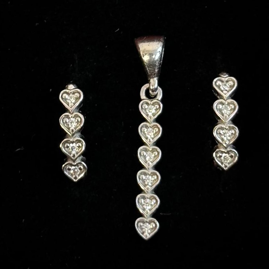 Set din Argint 925 Cercei si Pandantiv, Jolie Silver, pentru Dama, Model Inimi cu Pietre, Design Fin si Romantic, 3.52 g, Argintiu
