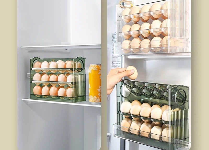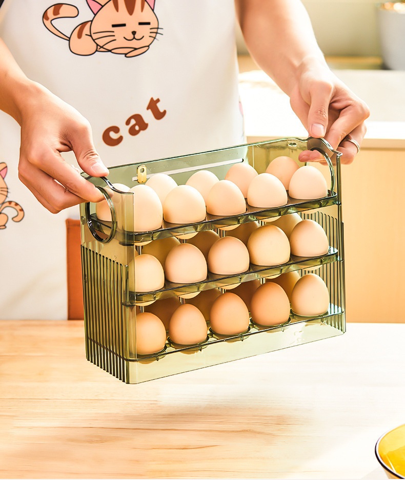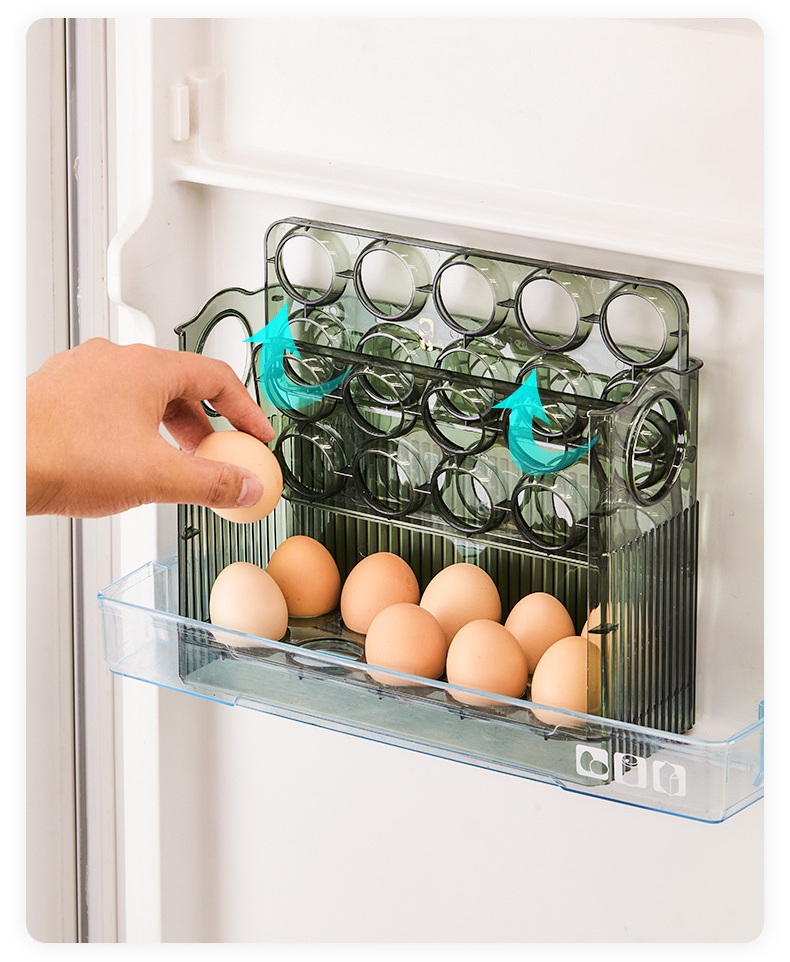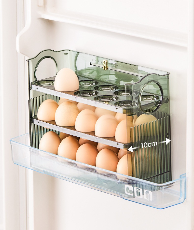 Suport Organizator pentru Oua, Flippy, Capacitate 30 Oua, Pentru Usa Frigiderului, 3 Straturi, din Plastic, Transparent