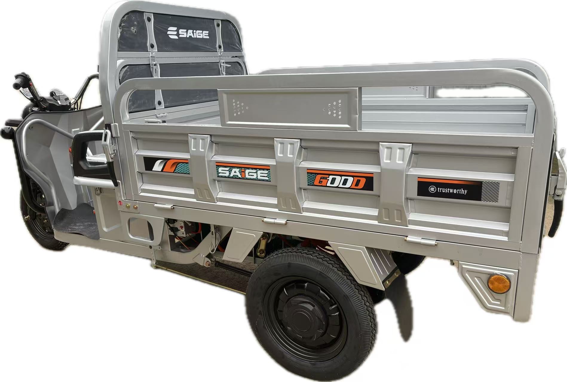 Triciclu Electic de Marfa Chuanqi, Saige, Fara Permis, Motor 1600W, Baterie 72V32Ah, Autonomie 60km, 250x88x115 cm, Viteza Maxima 25km/h, Gri
