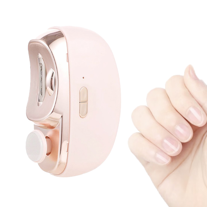 Unghiera Electrica 2 in 1, Flippy, Taiat si Slefuit, 2 Viteze, Lumina LED, Design Ergonomic, Compartiment Resturi, Portabila, Silentioasa 65 db, USB-C, Manichiura, Ideal Pentru Copii si Adulti, 8.5 x 6.8 x 3.3 cm, Roz