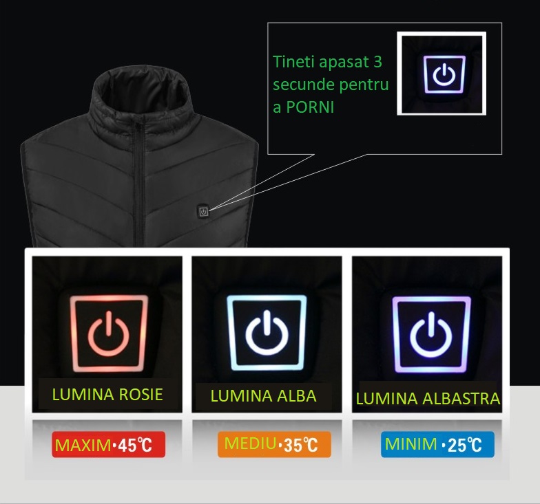 Pregătește-te pentru sezonul rece cu vesta încălzită Flippy®, ideală pentru drumeții, activități în aer liber sau pur și simplu pentru un plus de confort termic în zilele friguroase. Ușoară, practică și modernă, vesta oferă căldură în 2 zone esențiale: gât și spate, fiind echipată cu sistem de încălzire cu fibre de carbon prin infraroșu.